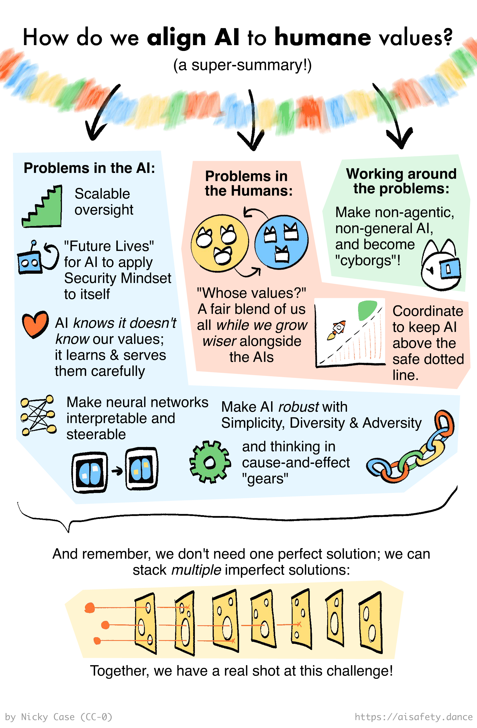 This does not mean AI Safety is 100% solved yet — we still need to triple-check these proposals, and get engineers/policymakers to even know about these solutions, let alone implement them. But for now, I'd say: "lots of work to do, but lots of promising starts"!